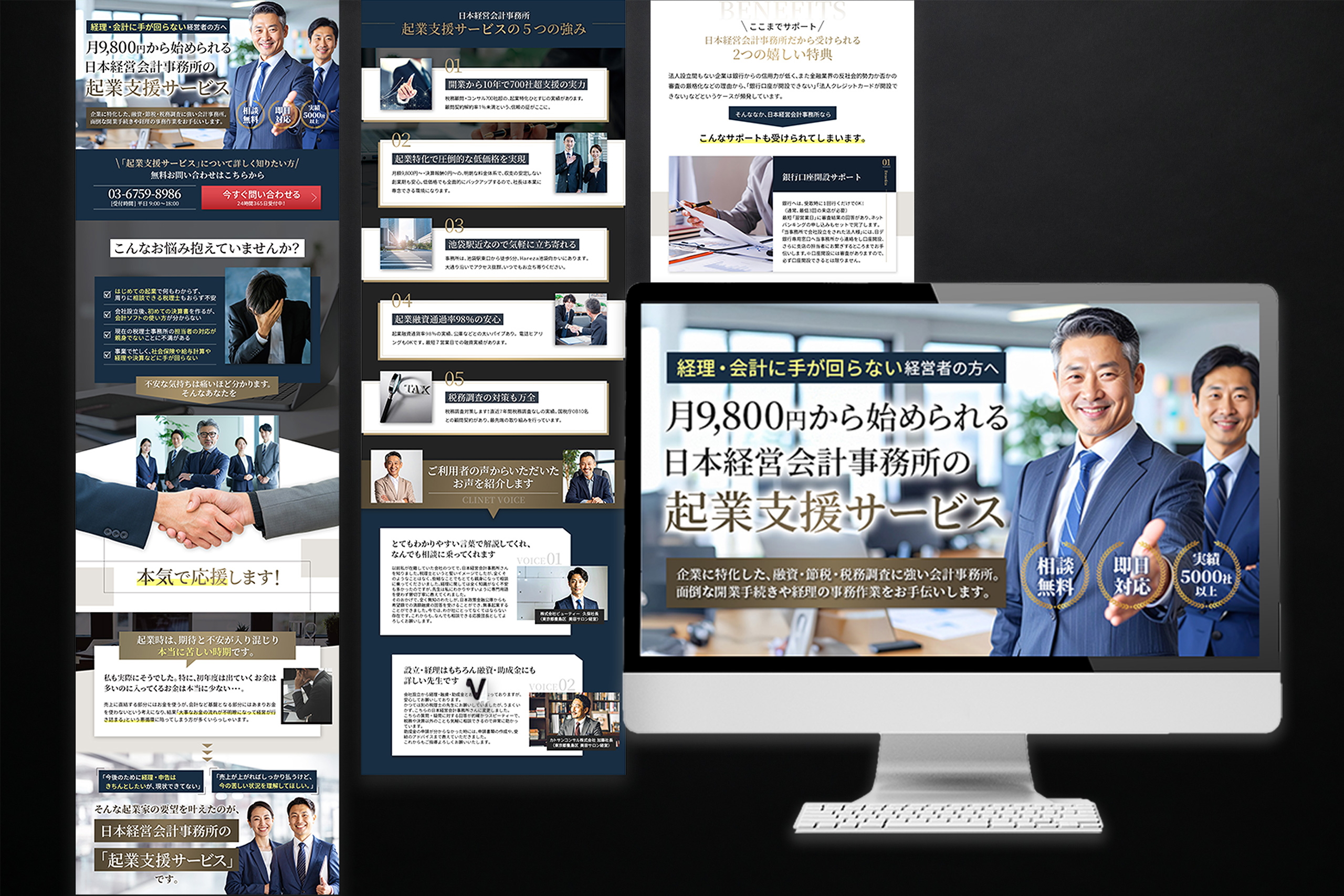会計事務所の企業支援サービスのLPを制作(PC版)いたしました。